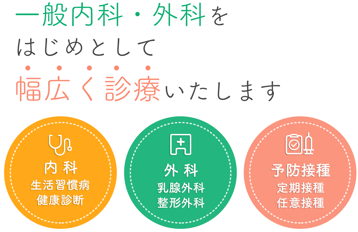 生活習慣病、発熱患者さんなど、内科疾患全般の診察と治療を行います。